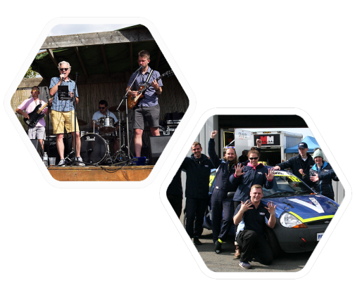 25 Years of RACELOGIC is celebrated by staff and their families at the Silverstone Classic Event, where Julian races his E-Type Jaguar.